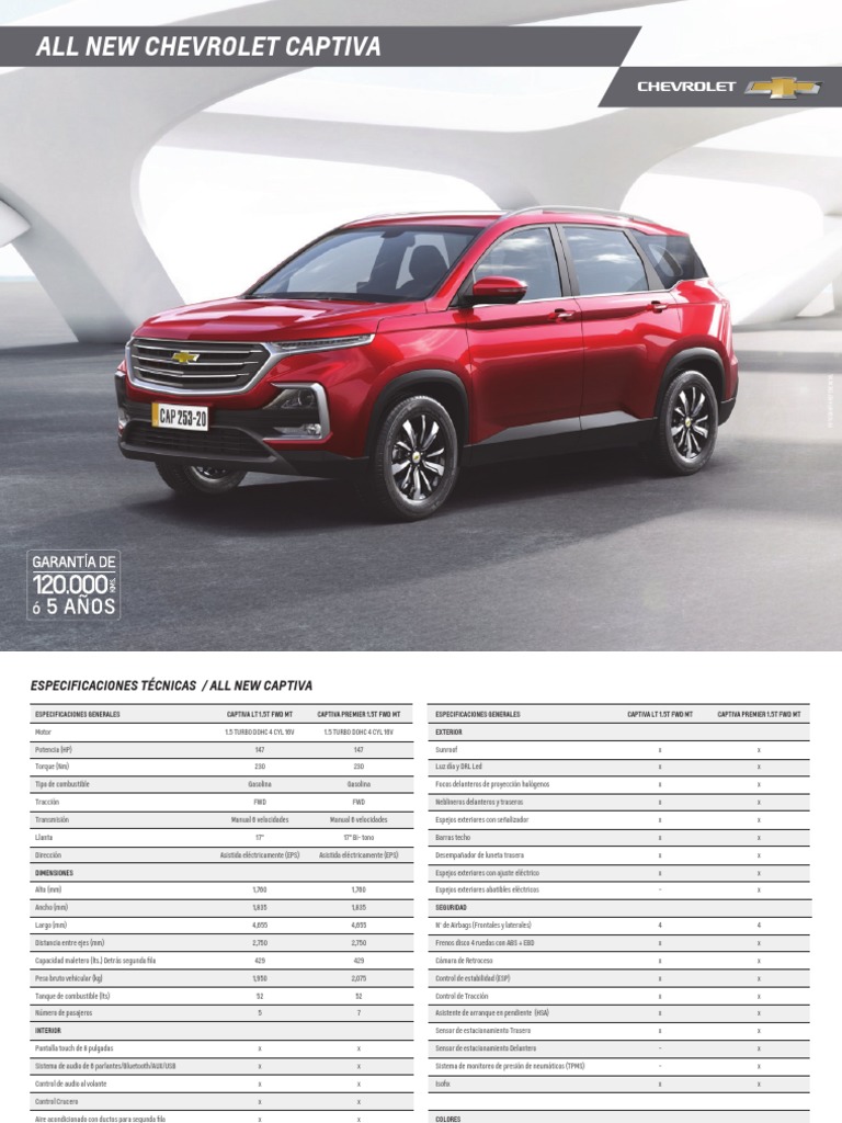 Ficha Tecnica Captiva 2021 / Nueva Camioneta Suv Captiva 2022 Chevrolet Aguinaco - Promoción aplica a unidades financiadas con entidad financiera produbanco grupo promerica.. Informamos que el día 25 de mayo de 2021. Informamos que el día 25 de mayo de 2021 entre las 13h00 y las 17h00, nuestra plataforma presentó fallas técnicas que llevaron a que se mostrara información de la marca chevrolet de otros países. Encuentre finos carros en venta. (1) productos sujetos a cambios de imagen y precios sin previo aviso. Chevrolet captiva 2022 llega para desafiar todas las expectativas de una camioneta suv con su diseño, motor turbo de 4 cilindros y transmisión automática.